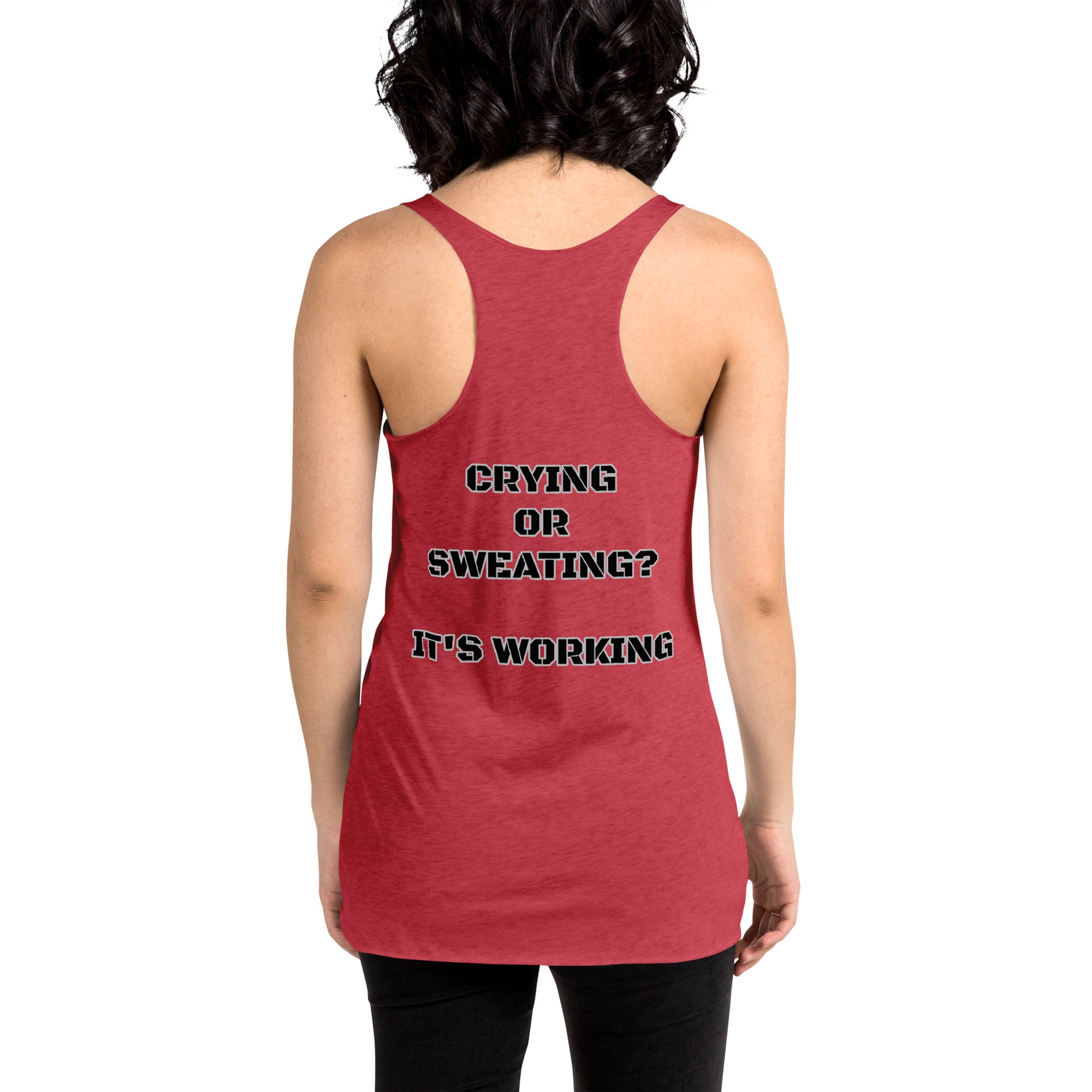 This racerback tank is soft, lightweight, and form-fitting with a flattering cut and raw edge seams for an edgy touch.